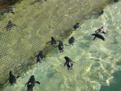 こいつ、愛嬌のある顔です。 かわいかったので ぱしゃり。 穴に縦に入っている魚。 名前は忘れちゃった~。 厳ついお顔で。 ペンギンズ。 気持ち良さそうに泳いでました。 暑いですからねえ。 さすがのフンボルトもほとんどが水中で ばちゃばちゃしてました。 このちっちゃいのは フェアリーペンギン。 背中しかみえない~~~っ!!