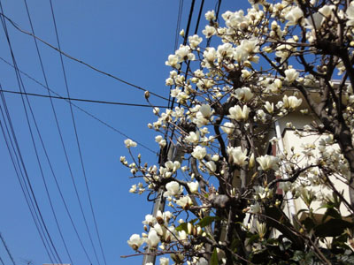 白木蓮も満開状態。